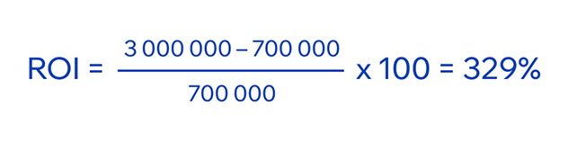 Посмотрим на пример расчета ROI: инвестиции в обучение команды новой методологии (например, Scrum) — 700 000 руб. Это позволило ускорить релиз нового функционала на 1 месяц. Прибыль от раннего выхода на рынок оценивается в 3 млн руб.